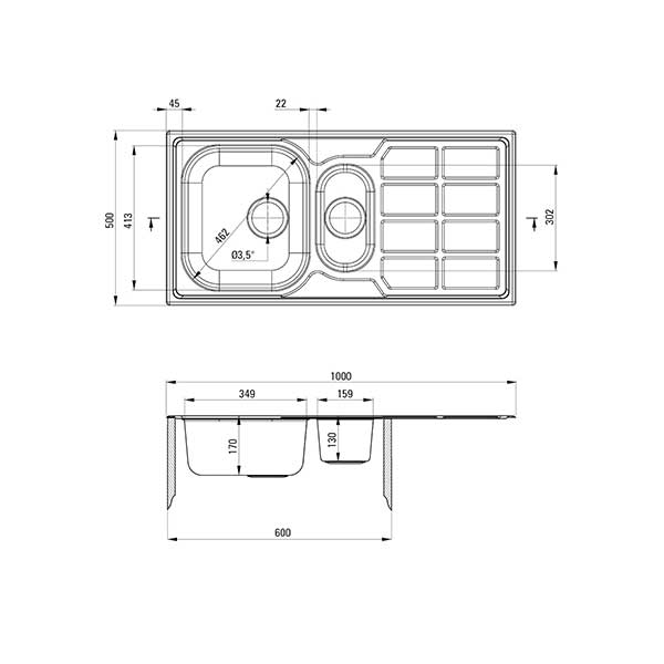 - Длабочина на корито 170 mm