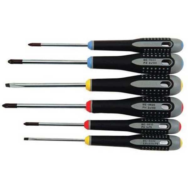 Сет од 6 ERGO™ шрафцигери BE-9886 (содржи 2 плоснасти, 2 PH и 2 PZ одвртувачи)