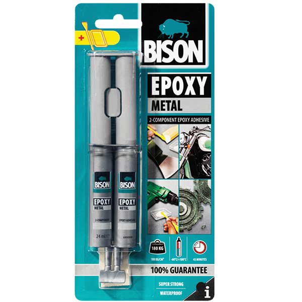 Течен метал BISON 2x24ml e eпоксидно двокомпонентно метално лепило за метални поправки под екстремни услови.